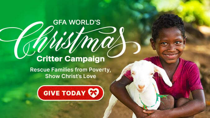 Can you imagine a chicken or a goat changing lives and opening doors to share Jesus’ love? That is exactly what the GFA World Critter Campaign is all about. The Critter Campaign is a project GFA started during the Christmas season to make it possible for people who enjoy this wonderful life that we have in Christ to celebrate Christmas by giving a gift of whatever they can to help the poorest, neediest, and most forgotten people around the world. Most people in the nations in which GFA World works have less than 53 cents of income per day. Just think of how even the smallest gift can help a family just like yours…where they are barely surviving.